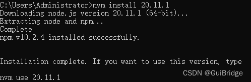 下载最新稳定版LST第一个:nvm install 20.11.1