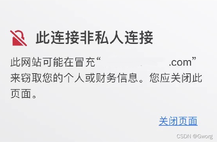 此连接非私人连接此网站可能在冒充来窃取您的个人或财务信息。您应该关闭页面。