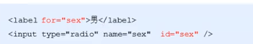 - 在实际操作时可能会遇到radio可以都选上的情况,我们必须确保他们的name属性一致,才可以实现单选的效果。