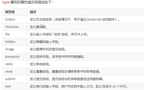 2.input表单元素。其中包含一个type属性,可以转换为不同的样式。主要有以下的形式。
