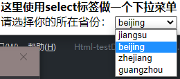5.select下拉列表,由select标签和option标签组成。可以使用selected属性来设置默认选项。