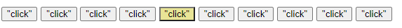 4.在第一个例子中,我们使用了以下代码来实现对点击的按钮改变颜色,而其他兄弟清除样式的功能。我们JQuery给我们提供了更为快捷的编程方式:链式编程,我们来看看效果。