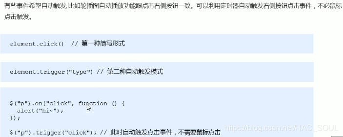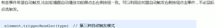 需要注意的是,当我们使用triggerHander的时候,是不会触发默认事件的。比如input组件当focus触发时,即获取焦点时,trigger方法会有光标闪烁,而triggerHander不会有。