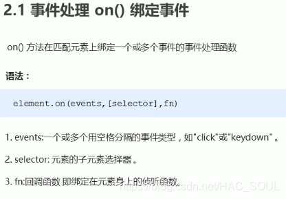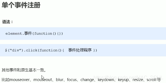 不过,通过文档我们还是可以看到一些绑定事件的方法,比如bind、live、delegate不过都比较老了,我们提倡使用on来代替他们。