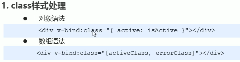 再说一下第二点,我们再使用class绑定时,可以通过数组名及对象名来简化操作,示例如下: