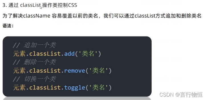className方式总是会替换掉原先的类,并且还需要回头看,这个被选中的元素的原有类。所以想下面我们来看看另一个方法。