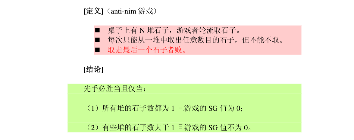 anti-nim说最后一个拿得输,而nim是最后一个拿得赢