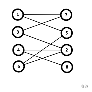 - 第二个点 3 3 3 要匹配点 7 7 7,点 1 1 1 可以重匹配点 5 5 5,则点 3 3 3 匹配点 7 7 7。