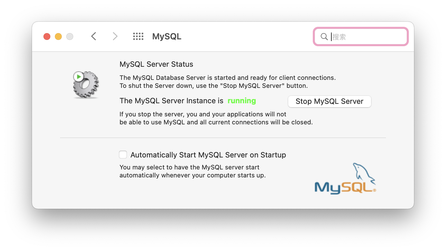 这篇博客介绍了如何在系统偏好设置中启动MySQL服务器,通过点击'Start MySQL Server'按钮,确保服务正常运行。