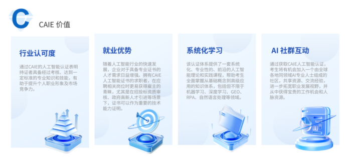 基于个人体验,对于在当下考虑通过系统学习来构建AI认知的朋友,我认为类似CAIE的认证路径或许值得纳入考量范围,原因可能包括:
