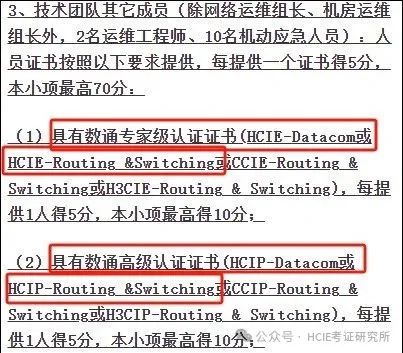 一些大项目还会明确点名要求“项目组成员必须有若干名HCIE”。