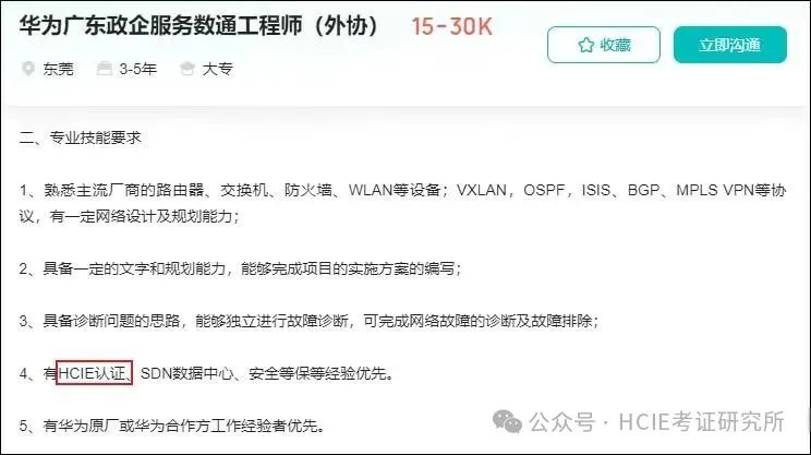 不少人在乙方做了十几年,发现升职跳不动了,很多项目招投标、职级评审都要求HCIE,不考就卡在原地。