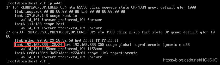 按照上面步骤设定完成后,使用 ip addr 命令 查看虚拟机的IP: