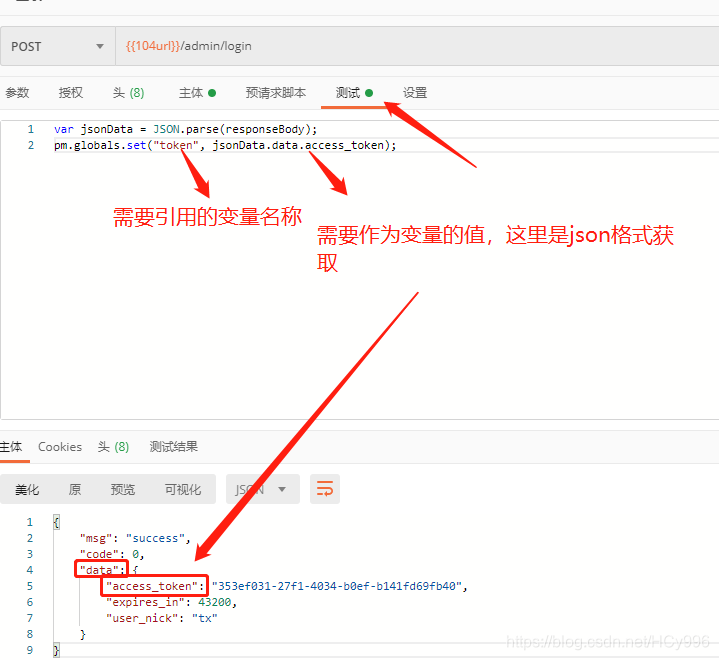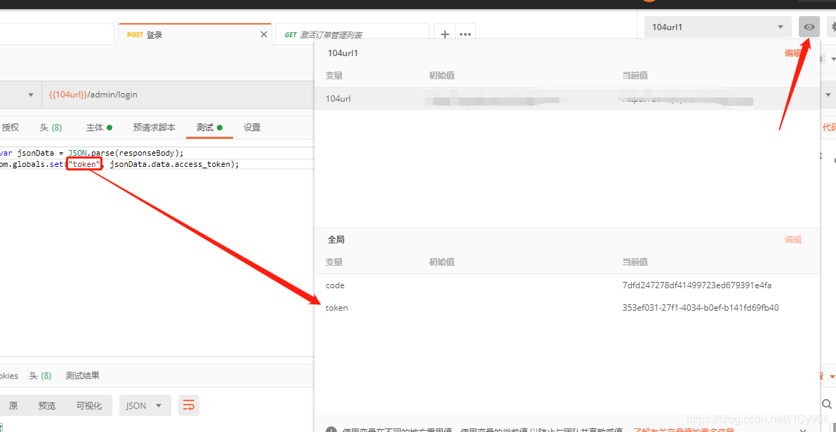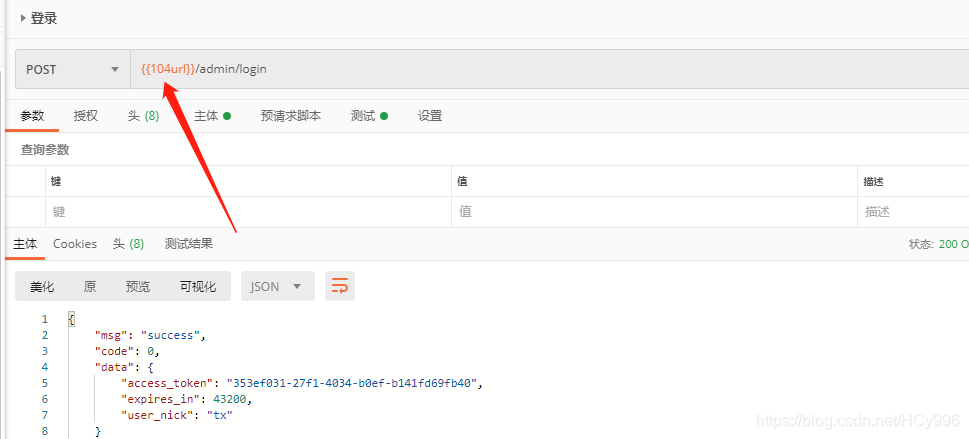 4:接口引用,使用 {{引用的变量}} 这里是 {{104url}}