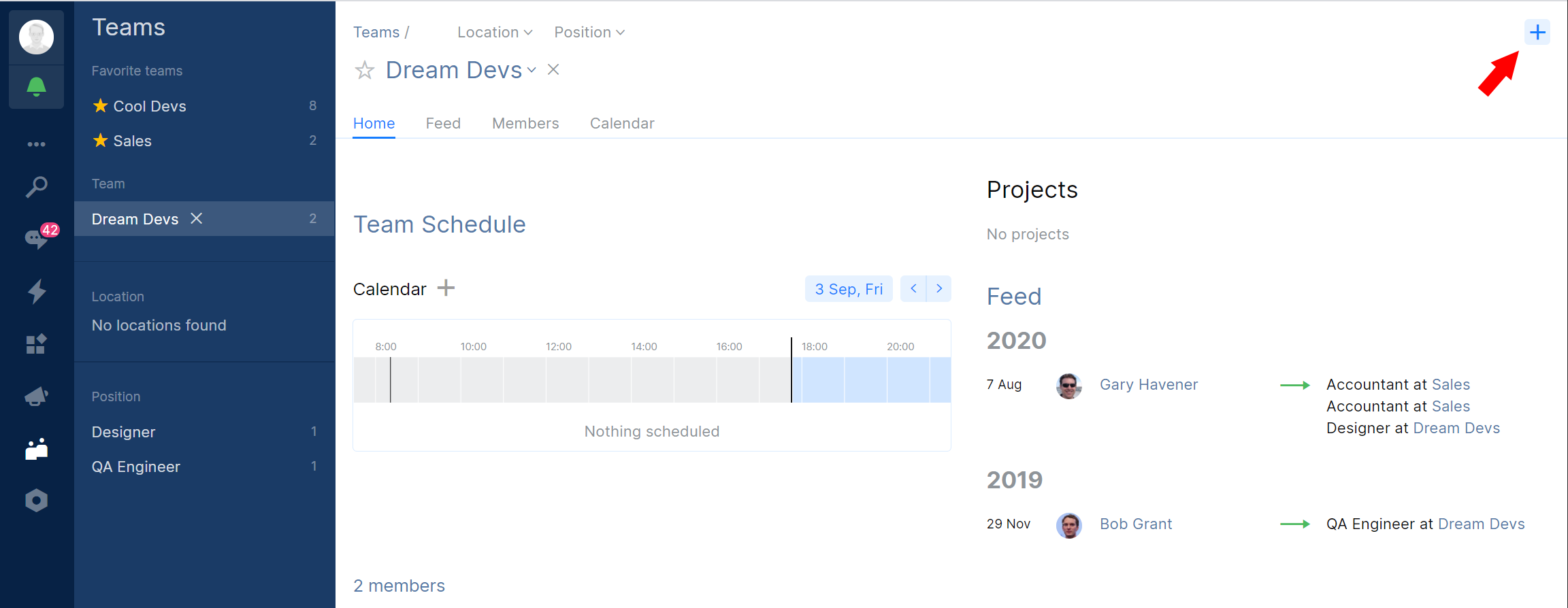 项目管理工具 Space的团队代表组织的实际结构。它们可帮助您找到有关公司、其子团队、成员和每个人的角色所需的所有信息。