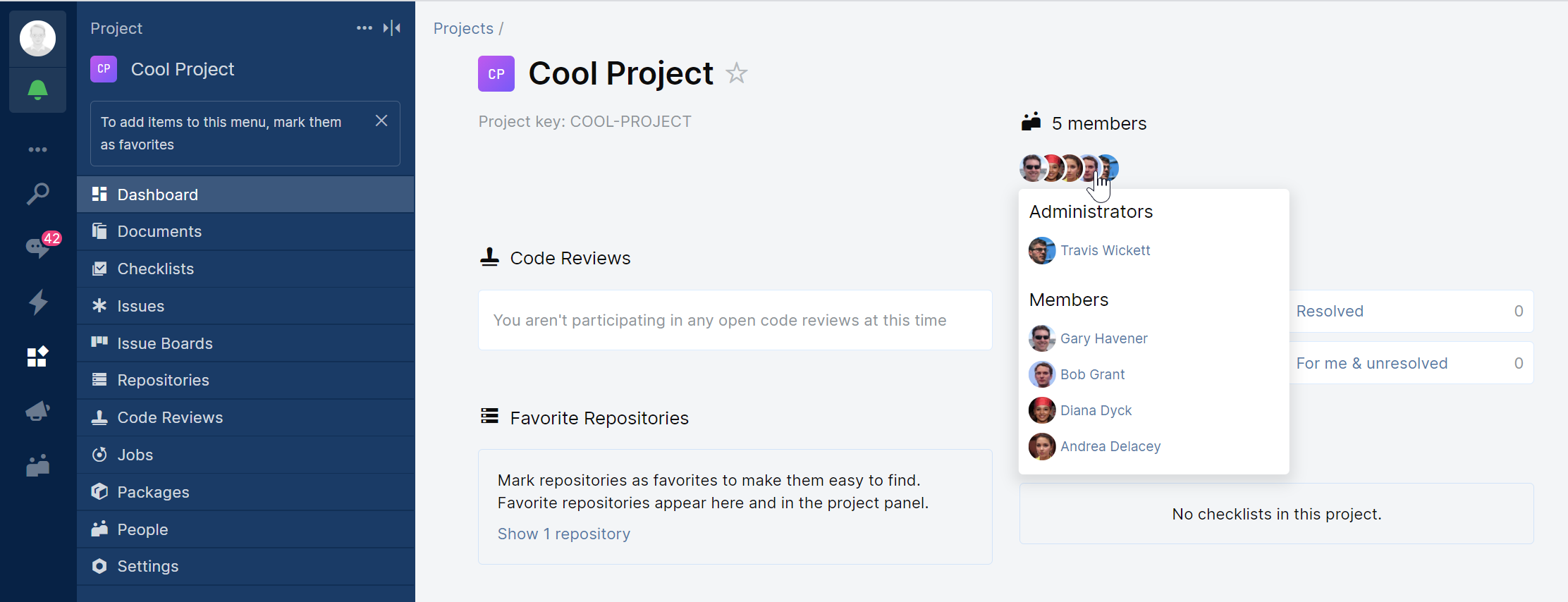 要加入现有项目,您需要联系项目管理员并申请会员资格。通过单击项目页面上的成员小部件找出项目管理员是谁: