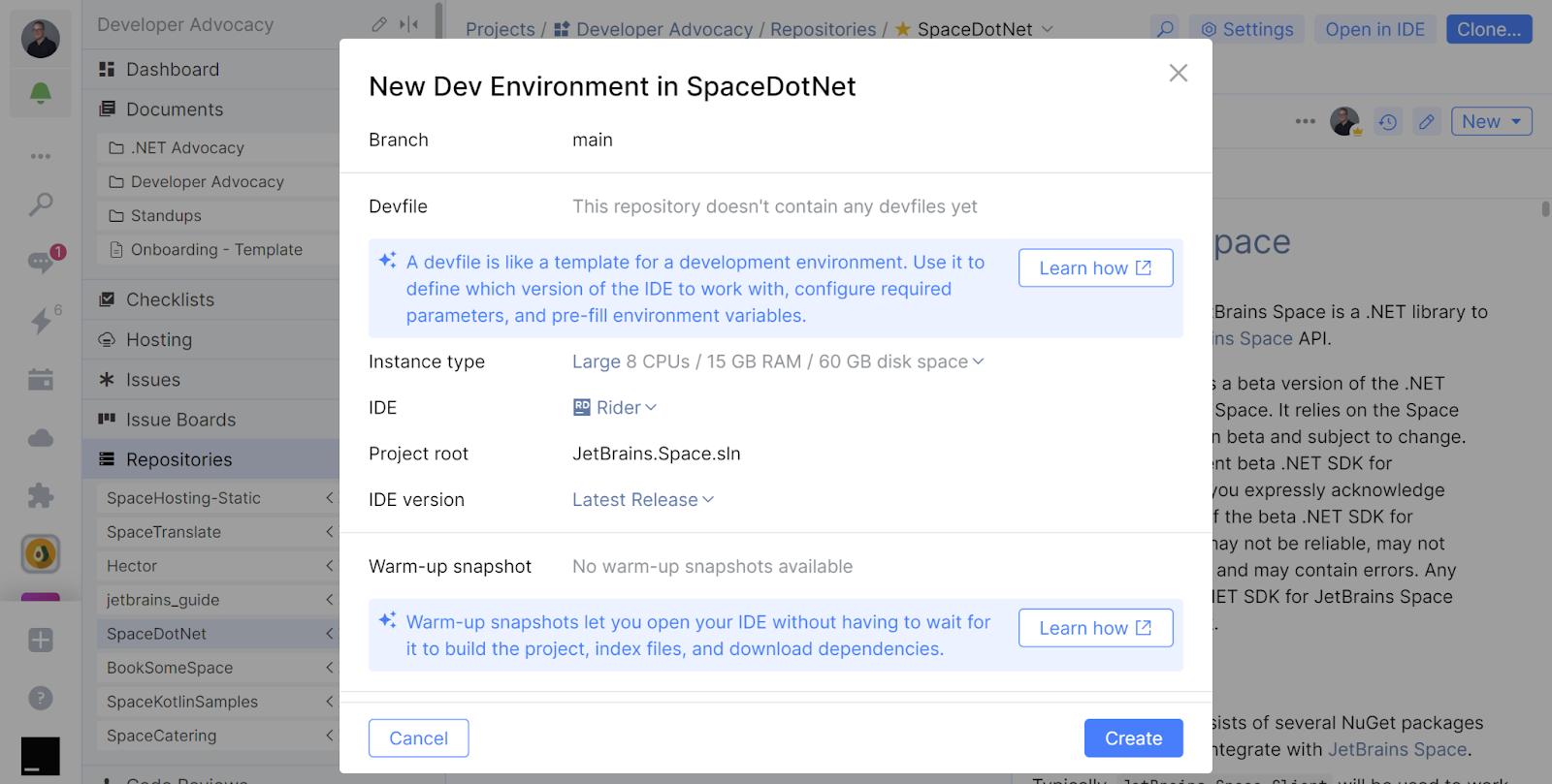 您现在可以使用Space 开发环境通过JetBrains Rider开发 .NET 项目。
