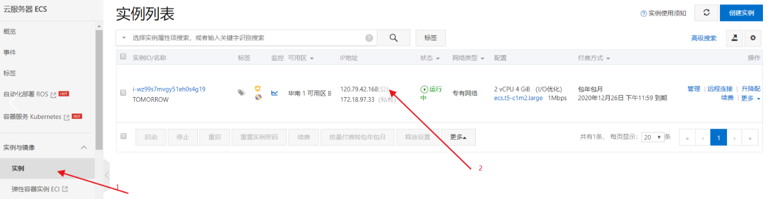 2.在弹出的框中输入在阿里云的终端的实例中显示的公有ip地址,此处我的地址为120.79.42.168