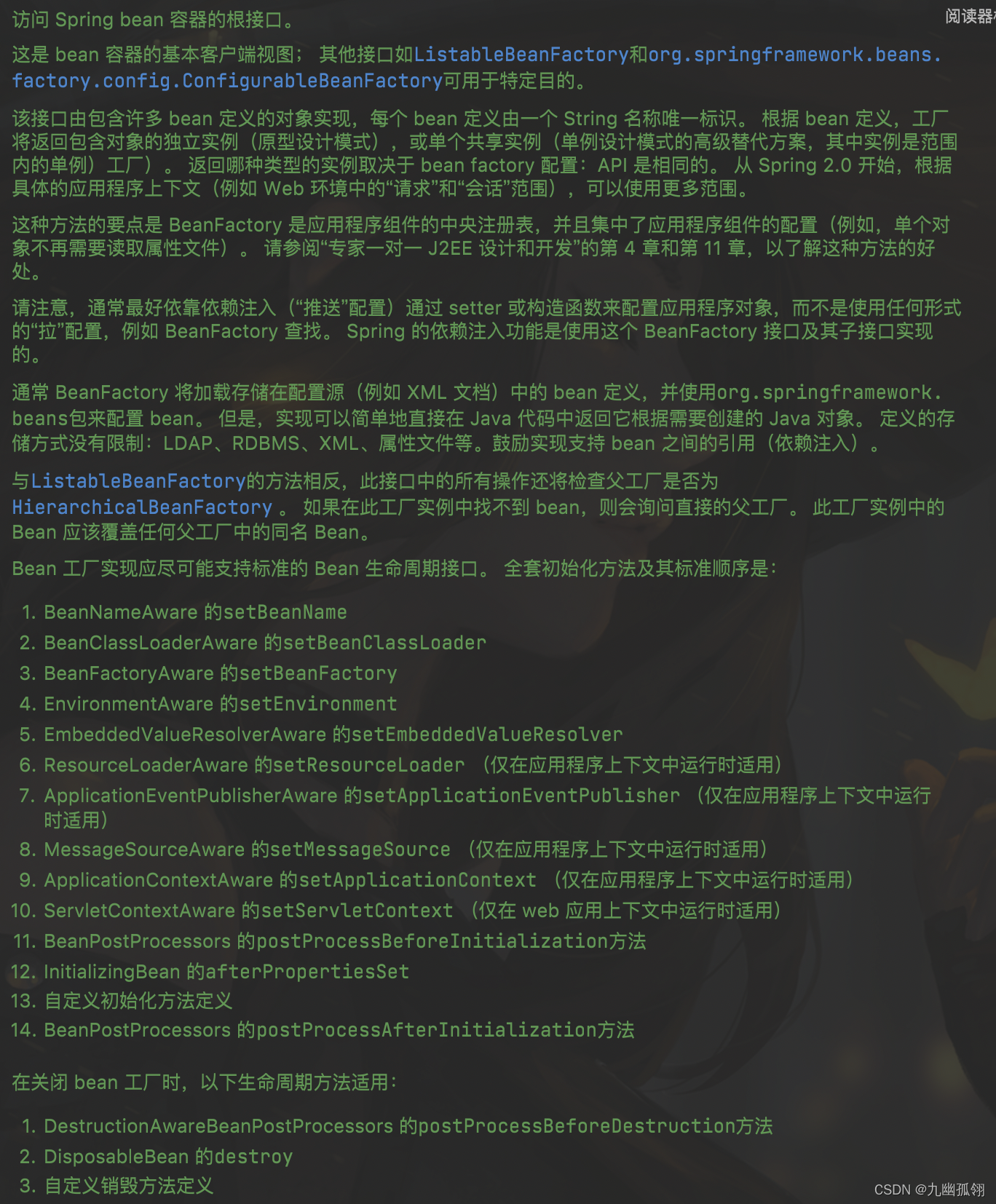 先来看看BeanFactory注释怎么说,信息量有点大,重点关注里面那个初始化顺序。