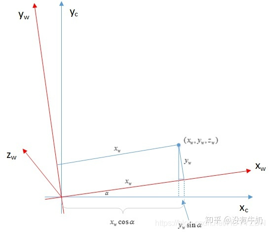 首先介绍旋转过程。下图为世界坐标系绕z轴旋转模型: