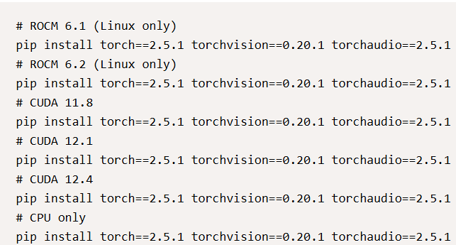 AMD需要先运行一遍官方的安装代码(因为官网torch+cu下载速度慢,torch安装完成之后运行官方安装代码会跳过安装其他依赖),再卸载随后安装镜像网站下载的torch+cu,