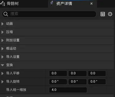 使用导入统一缩放,重新导入一边解决,平移和换位置也能使用,导入之后需要重新打开动画序列才能看见效果