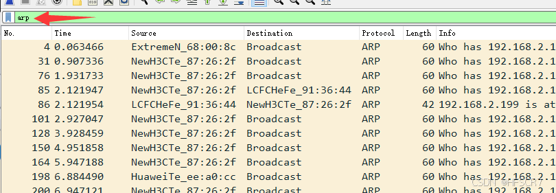 常用协议分析-ARP协议(英语:Address Resolution Protocol,细与︰AKP) 定一个通过解析网层地址来找寻数据链路层地址的网络传输协议,它在IPv4中极其重要。ARP是通过网络地址来定位MAC地 址。