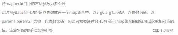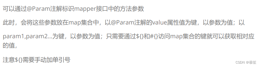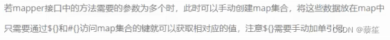 3.若mapper接口方法的参数为map集合类型的参数,只需要通过#{}和${}访问map集合的键,就可以获取相对应的值,一定要注意${}的单引号问题