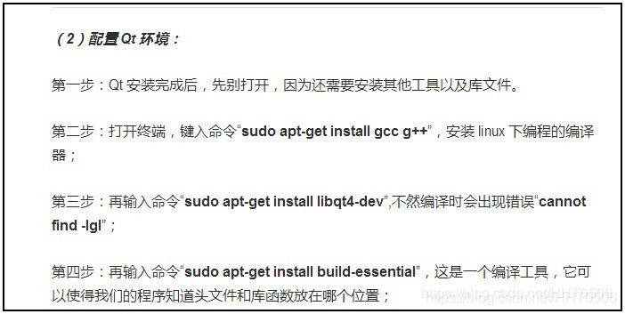 第三步:再输入命令“sudo apt-get install libqt4-dev”,不然编译时会出现错误“cannot find -lgl”;