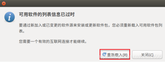 7.会弹出重新载入软件包列表对话框,点击重新载入: