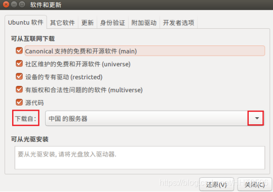 核心:设置 > 软件和更新 > Ubuntu软件 > 下载自 > 其他站点,选择清华镜像源或阿里云。