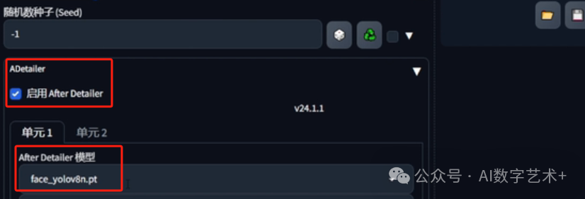 找到ADetailer,开启细节修复,