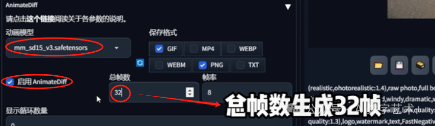 再打开动画模型,选择运动模型V3,总帧数生成32帧,其他的参数默认,