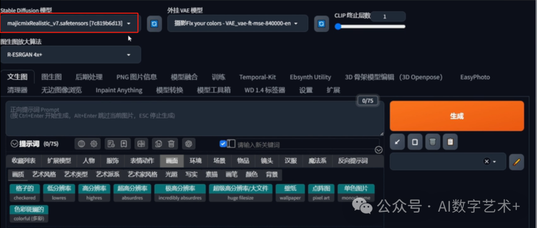 HI,大家好!最近AI热度越来越高,有许多博主也用AI技术生成视频。下面我就详细讲解一下这些AI视频的制作方法,我们来到web UI的界面,首先我们来选择喜欢的大模型,这里用到的就是麦橘写实的大模型,文章使用的AI设计工具,模型和插件,都已经整理好了,文末扫码即可免费获取噢~