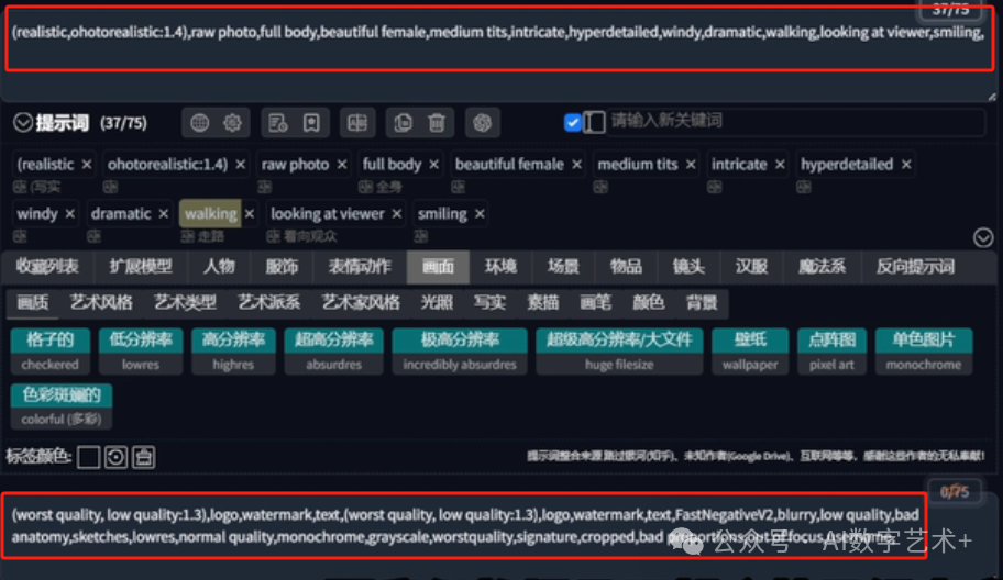 在文生图里面输入正向提示词,接着再来填入反向提示词。