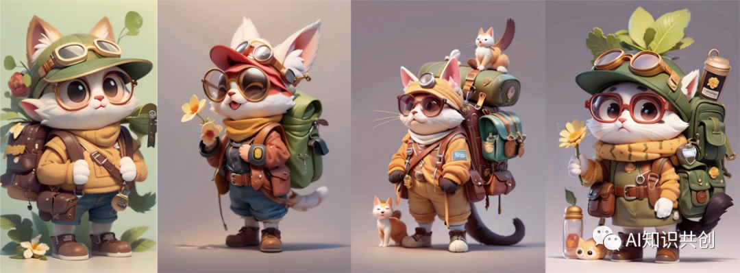 生成了四个旅行的猫咪,先看看我的最终效果: