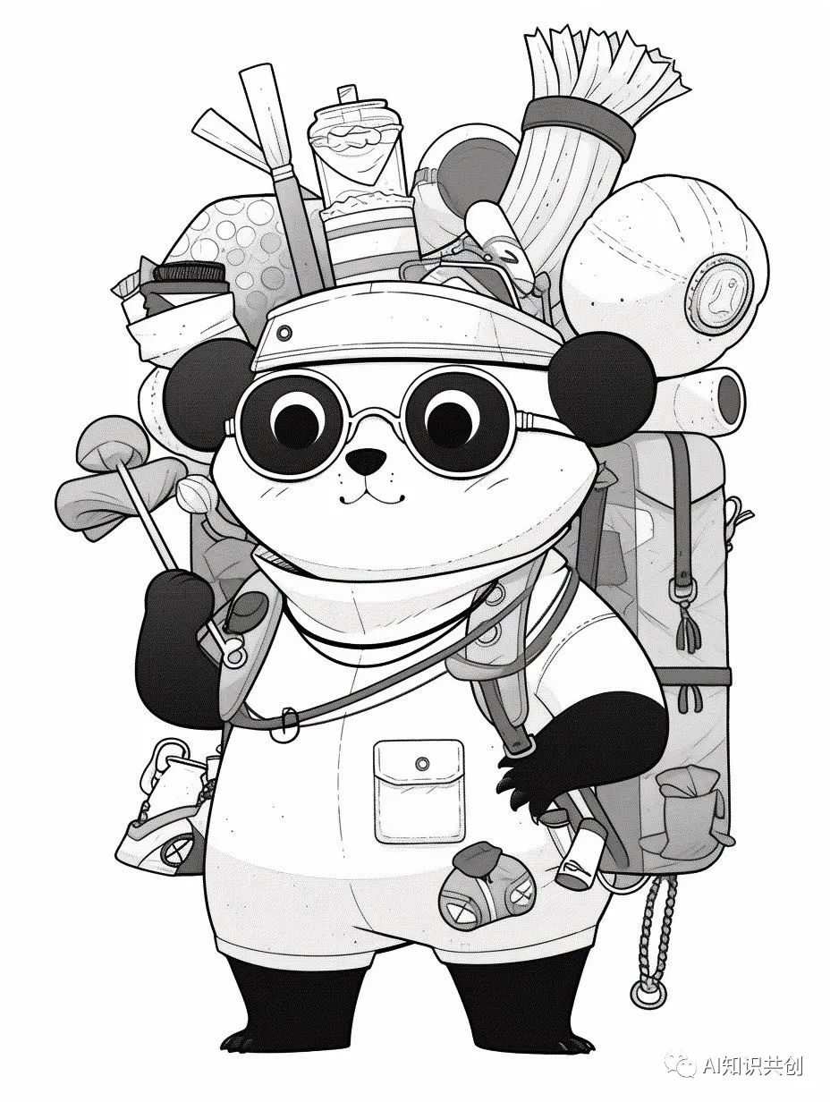重复以上的步骤,用mj生成了一只旅行熊猫的线稿图