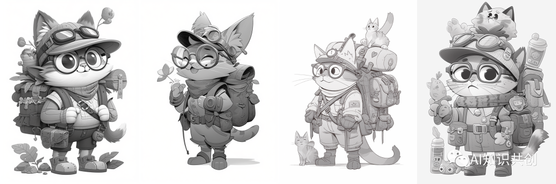 这只黑白线稿和上面的几只猫咪比较起来,细节更简单,线条更简洁,明暗效果几乎没有,这样的图放进sd里也是可以实现3d效果的。
