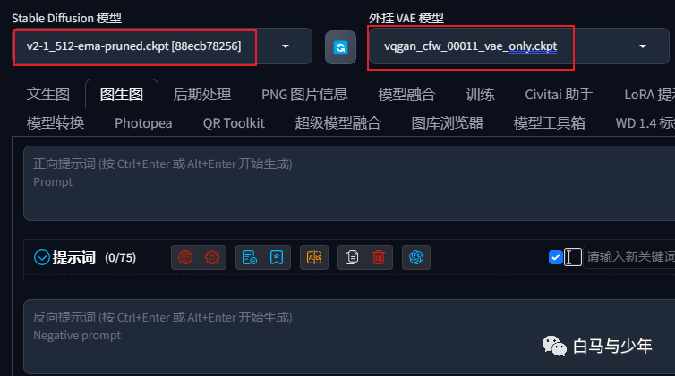 切换到sd2.1的模型进行修复,vae选择vqgan,提示词可以什么都不写,以免对原图产生干扰。