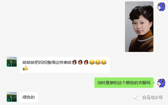 同样的步骤,又还原了一张我妈妈的照片。在问到她当时穿的什么颜色衣服的时候,她记得可清楚了,想都没想就告诉我说是绿色的。