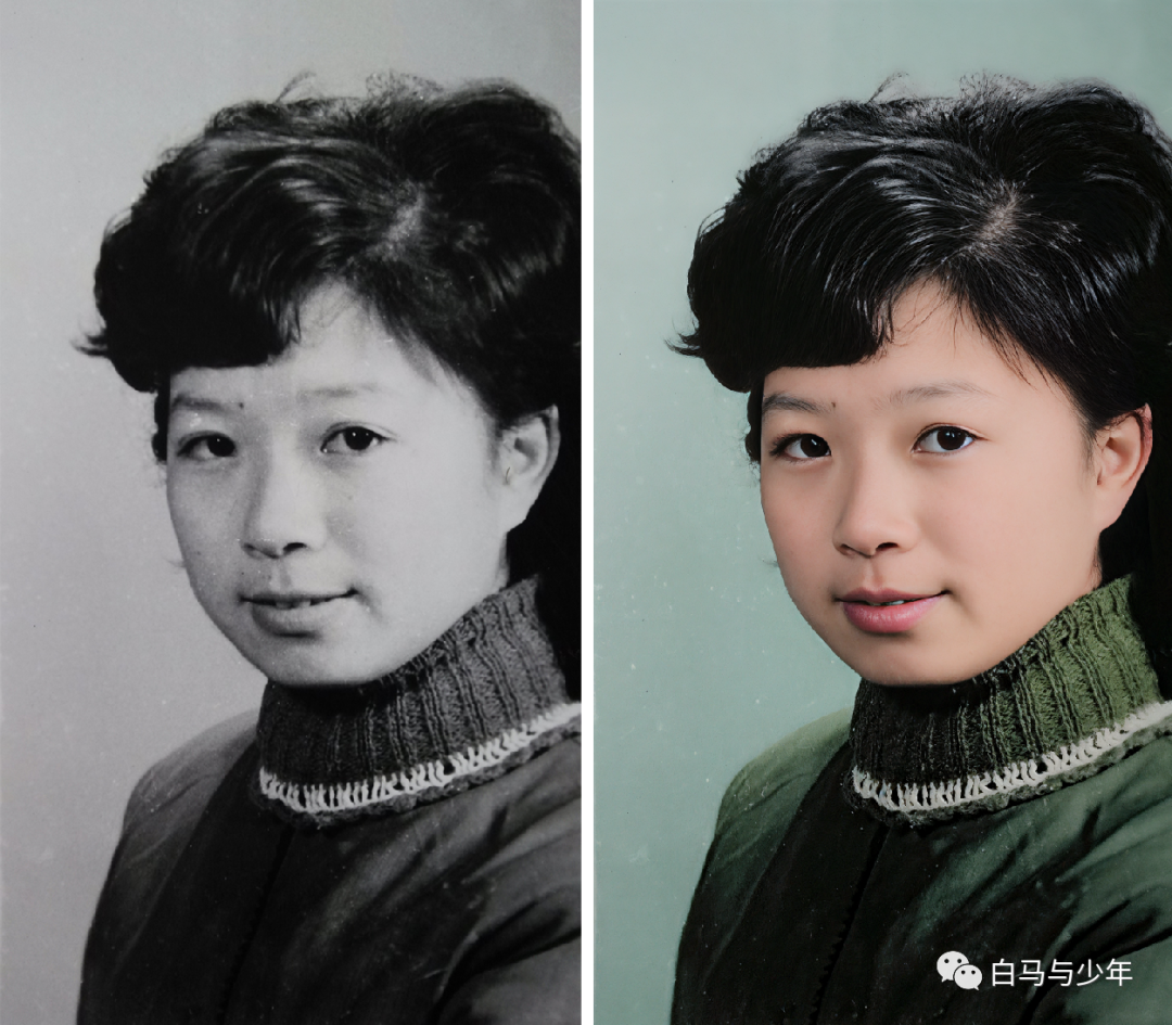 对比一下看看,之前的黑白照片和经过上色高清化完成之后效果。
