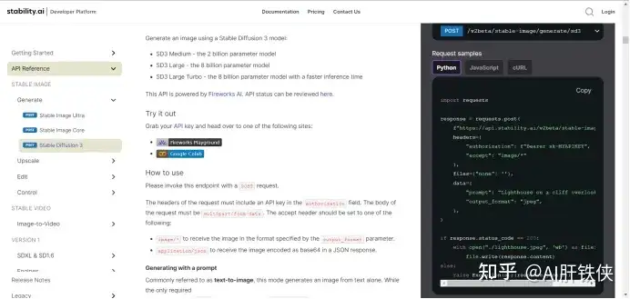 StabilityAI 为 Stable Diffusion 3 提供了一套 API