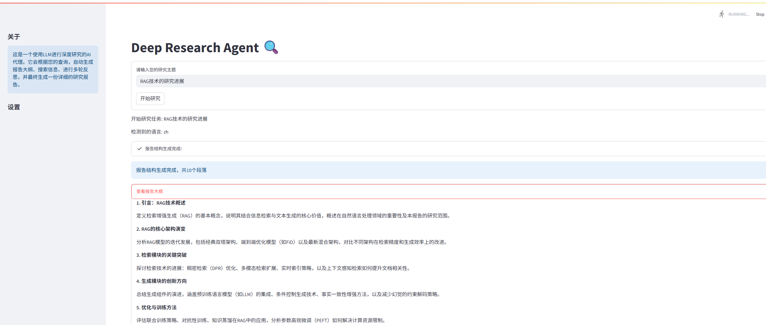 看着这些大厂的产品,是不是也想实现一个小型DeepResearch?前几天笔者看到一个文章,https://www.newsletter.swirlai.com/p/building-deep-research-agent-from,笔者基于这个文章进行完善,实现一个DeepResearch,实现了中文版本以及streamlit应用的创建,这个代码可以帮助我们从底层手撸一个属于自己的深度研究Agent。
