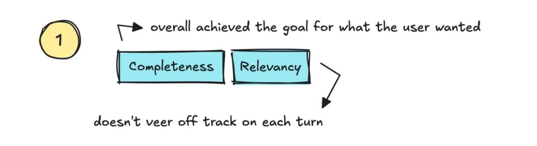 相关性指标用于追踪 LLM 是否恰当地处理了用户的查询并保证不偏离主题;而若最终结果真正达成了用户目标,则完整性得分就高。