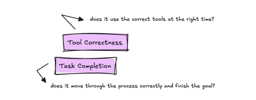 尽管各评估框架对这些指标的命名可能不同,但最核心的两项追踪指标是任务完成度与工具调用准确率。