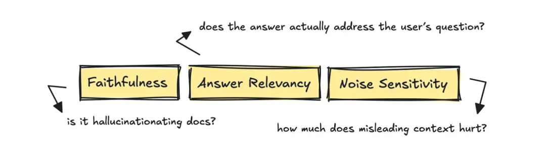 这方面,RAGAS 框架提供的 Answer Relevancy、Faithfulness 和 Noise Sensitivity 等指标非常实用。
