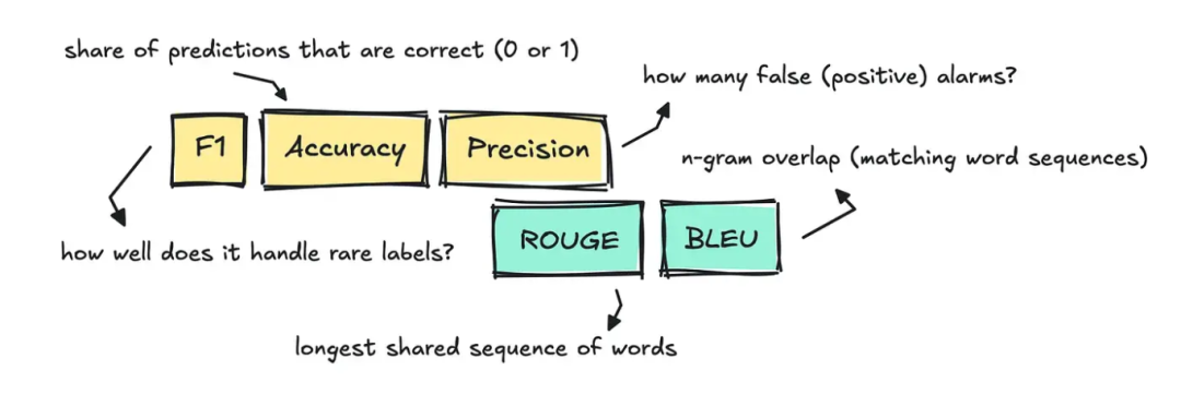 在评估分类、翻译、摘要等传统 NLP 任务时,我们通常会借助准确率(accuracy)、精确率(precision)、F1 值、BLEU 和 ROUGE这类传统指标。
