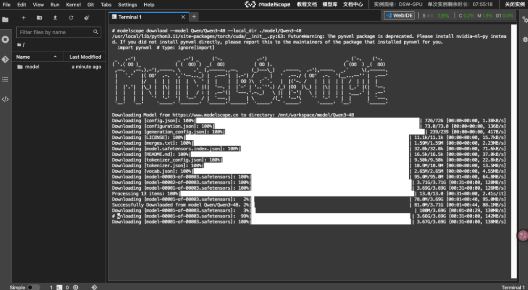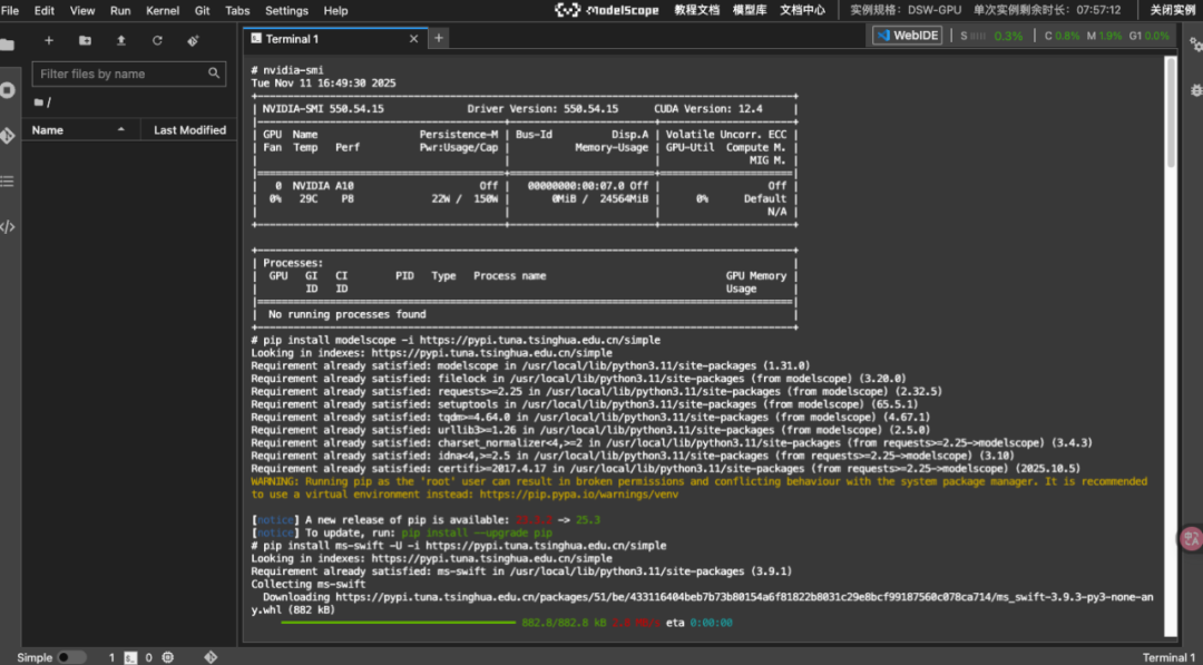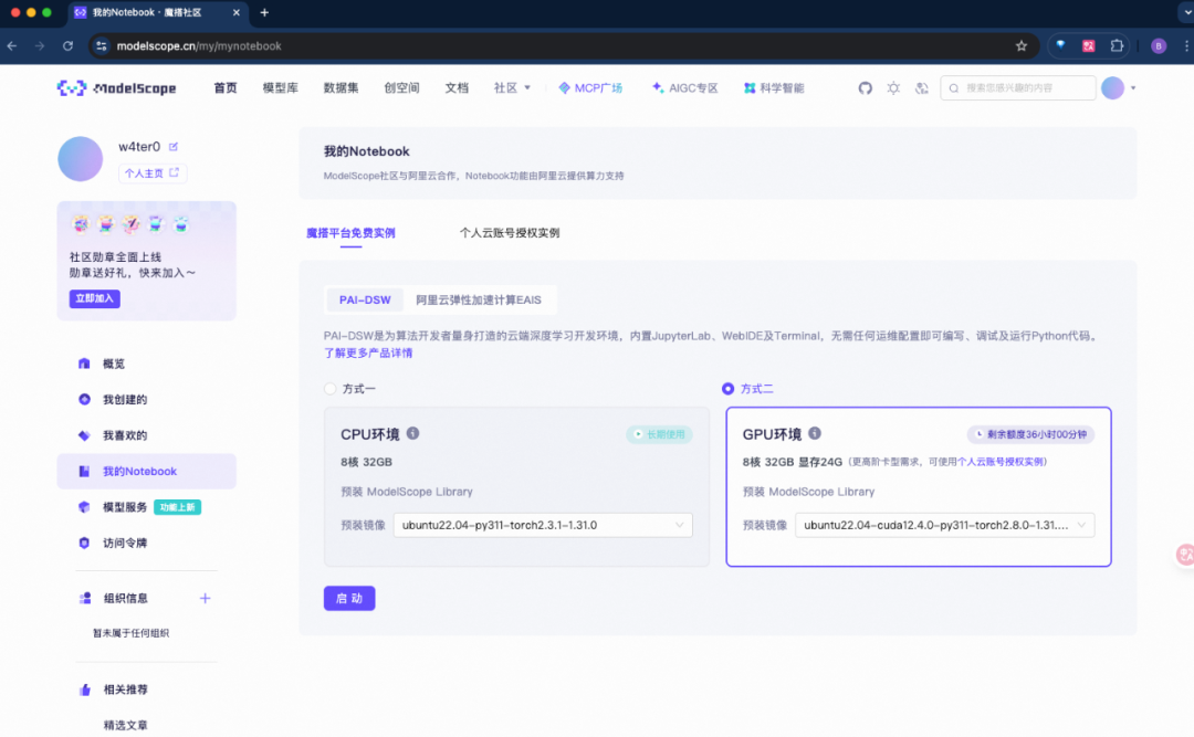 以上我都没有,所以使用ModelScope提供的免费GPU资源。