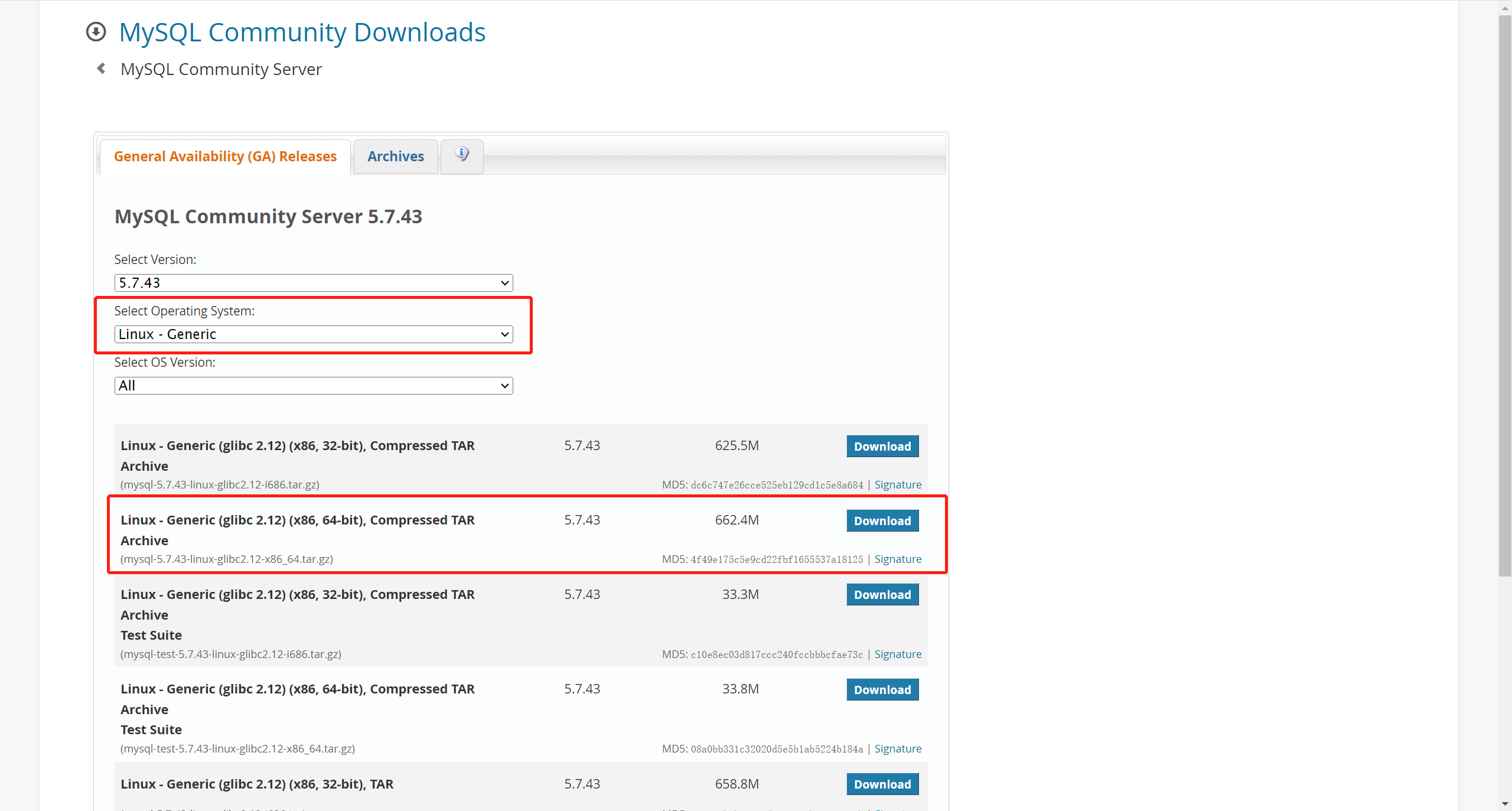 这是官网:https://dev.mysql.com/downloads/mysql/5.7.html