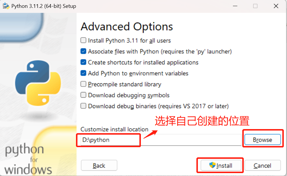2、下载完后,将exe文件放置D:\python,然后双击打开exe按以下步骤即可安装